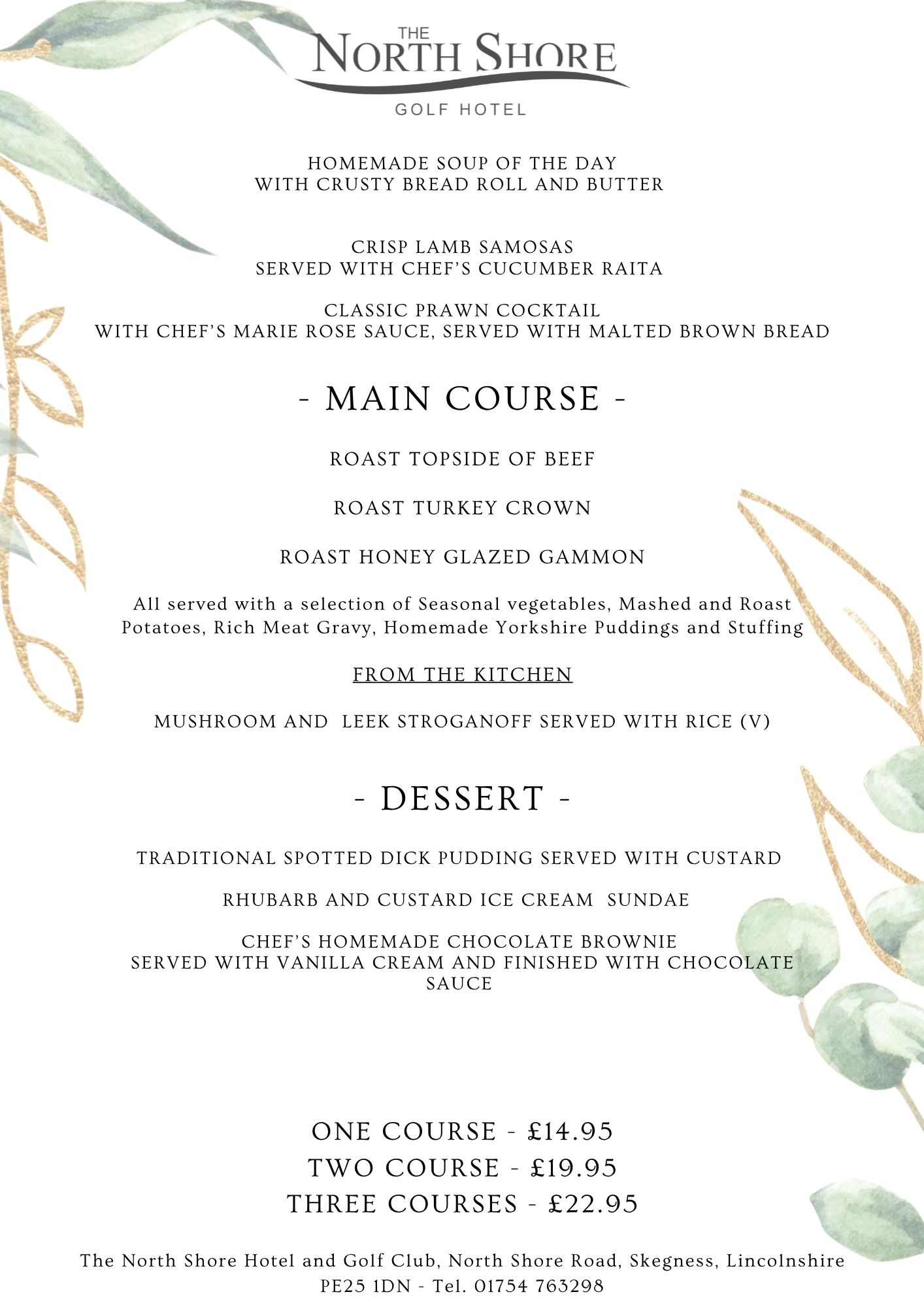 3 Course dinner £24.95 per person
